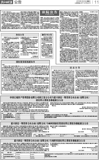 中国长城资产管理股份有限公司浙江省分公司与嘉兴浙信一期投资合伙企业(有限合伙) 债权转让暨债务催收联合公告