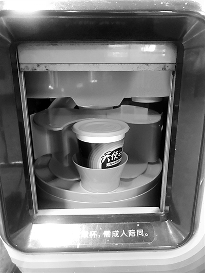 记者现场榨了一杯橙汁,45秒后,橙汁榨好了,确实方便。不过取出橙汁时记者发现,机器的取杯口、取吸管处看起来黑乎乎的,感觉很脏。打开杯盖,果汁内混杂着不少黑渣,一搅拌还会浮上来不少。