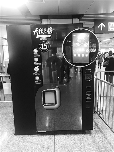 昨天,记者在杭州龙翔桥地铁站,发现了一台“天使之橙”现榨橙汁机。机器侧面贴着食品经营许可证和营业执照,上面还有市场监督的电话。