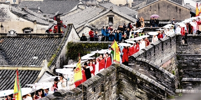 2月24日,100名汉服爱好者穿梭于临海紫阳街、江南古长城,以巡游的形式展示中华传统服饰之美、展现中华传统文化风采。