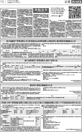 中国东方资产管理股份有限公司浙江省分公司关于浙江天禄能源有限公司等3户不良债权的处置补充公告