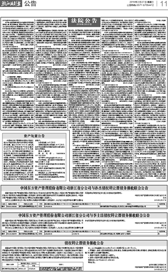 中国东方资产管理股份有限公司浙江省分公司与孙杰债权转让暨债务催收联合公告