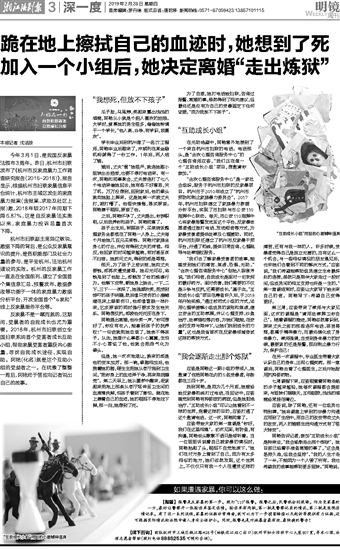 跪在地上擦拭自己的血迹时,她想到了死 加入一个小组后,她决定离婚“走出炼狱”