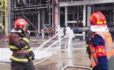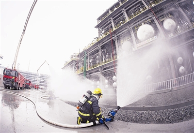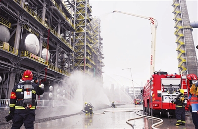 2月27日上午,演练在舟山一悬水岛屿举行,演练模拟了一石油化工企业生产装置因作业不规范,造成物料泄漏引发混合气体爆炸,形成立体燃烧。