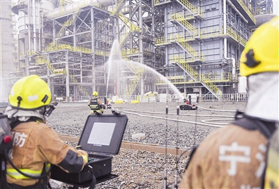 11时许,事故装置再次发生爆炸,流淌火面积进一步扩大,威胁到邻近加氢装置。很快,总队指挥部和宁波消防救援支队的增援力量赶到现场,并充分运用前沿指挥部的作用,指挥现场各救援力量对各装置进行冷却保护、控制燃烧和远程供水等作战项目。