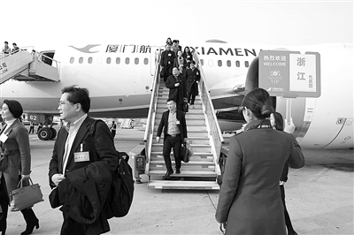 3月2日16时,肩负着浙江人民的期望和嘱托,参加十三届全国人大二次会议的浙江代表团顺利抵达北京,并向大会报到。