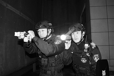 近日,杭州余杭区公安分局巡特警大队战狼突击队开展演练,利用陌生山地、复杂地域、特殊环境进行贴近实战的夜间搜捕。演练模拟余杭某地发生一起持刀抢夺案件,“嫌疑人”脱逃,并被警方包围在兴元路皇国山公园内。公园内道路复杂,丛林较多,“嫌疑人”持刀拒捕风险较大,突击队队员分成两组,携带微光夜视仪等先进设备,协同作战。经过1个多小时的紧张搜捕,2名“嫌疑人”先后落网。