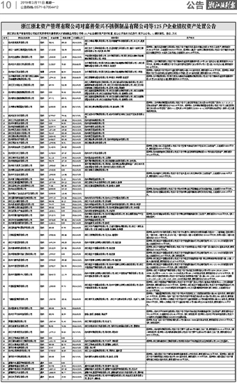 浙江浙北资产管理有限公司对嘉善荣兴不锈钢制品有限公司等125户企业债权资产处置公告