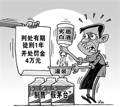 为获取非法利益,男子私自灌装劣质白酒冒充品牌白酒销售,最终遭受法律惩罚。记者从北京市房山区人民法院获悉,这家法院日前公开开庭审理了被告人王某某假冒注册商标案,并当庭宣判。法庭依法判处被告人王某某有期徒刑1年,并处罚金人民币4万元。