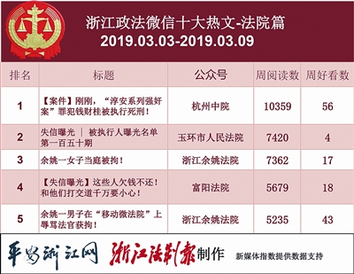 恭喜“杭州中院”荣登本期法院榜单榜首!热文榜上,“杭州中院”的《【案件】刚刚,“淳安系列强奸案”罪犯钱财桂被执行死刑!》一文的阅读数高企。这个消息发得非常及时,一发出来,阅读数就不断攀升。想要出“爆款”文章,“快”也是秘诀之一。