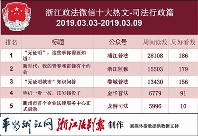 本期司法行政榜上,位居前三的依次是“浦江普法”“浙江监狱”“婺城普法”。“浦江普法”的《“无证明”,这些事你需要知道!》一文备受关注。关于“各种证明该如何处理”,此文给出了详细答案。为老百姓提供有用的信息,老百姓自然是领情的。