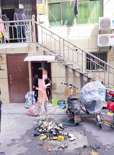 罗米:是说,那天我们文新派出所民警赶到现场,发现火已经被扑灭了,但是现场一片狼藉,这对夫妻邻居家的电动车也“躺枪”被烧毁了。