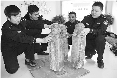 3月20日上午,台州市公安局椒江分局洪家派出所民警追回7件被盗文物。