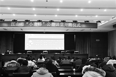 近日,“小蜜蜂”公益课堂开班仪式在江山市检察院举行,由心理咨询师和检察院“彩虹工作室”干警为在座近百名小学生、团干部开启了“小蜜蜂”公益课堂第一课。该公益课堂由江山团市委主办,江山市检察院团支部、江山市城南中学团委承办,旨在引导志愿者、青少年事务社工、心理咨询师、律师等社会力量向广大青少年、市民提供自护、急救、维权等公益教学。