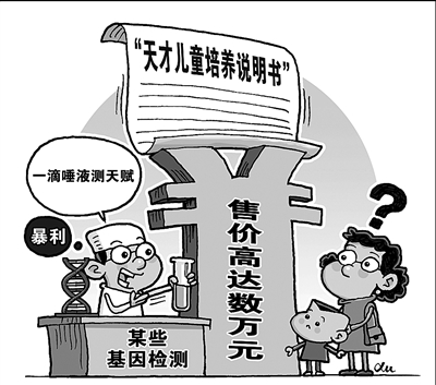 通过唾液就能测出孩子具备哪种天赋,并以此作为孩子的“培养说明书”,培养出某个领域的天才……名为“儿童天赋基因检测”的项目,近来在各地悄然流行。虽然有的收费高达数万元,但还是受到不少父母的追捧。