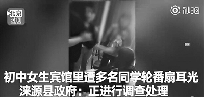 初中女生宾馆里遭多名同学轮番扇耳光 河北涞源县政府:正进行调查处理