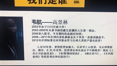 团伙还“请”了一名投资人“高景林”老师,他的个人资料非常“厉害”——2002年毕业于某交通大学,入股市12年,牛市期间曾收益超过50倍。