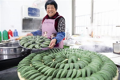 3月27日,杭州市临安区天目山镇交口村村民将蒸熟的“清明果”起笼。清明节临近,当地居民开始包制传统的特色食品“清明果”。“清明果”又称青团、艾果,分甜、咸两种,吃青团是我国南方部分地区的清明节习俗。