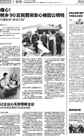 痛心! 桐乡90后民警突发心梗因公牺牲