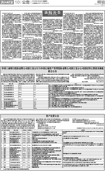 中国工商银行股份有限公司浙江省分行与中国长城资产管理股份有限公司浙江省分公司债权转让暨债务催收联合公告