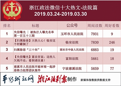 恭喜!“临安法院”获得本期法院榜第一。回顾前一个月的榜单,“临安法院”没进过前五,这次冲上冠军宝座,也算得上是“黑马”一匹了。热文榜上,“玉环市人民法院”的《失信曝光 | 被执行人曝光名单第一百五十三期》排名第一,“临安法院”的《【扫黑除恶】大快人心!临安这个村霸倒了》紧追其后。尤其是“临安法院”的这篇文章获得246个“在看数”,奠定了公号夺魁的基础。