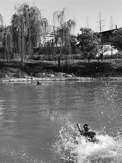 1日15时20分,下城中队官兵正在进行400米障碍训练,突然听到围墙外的河边有呼救声,官兵们拿着救生器材迅速前往,同时拨打120急救电话。