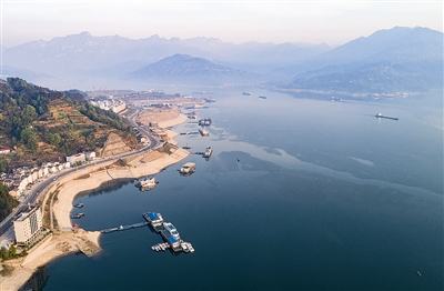 4月8日拍摄的三峡大坝上游湖北省宜昌市秭归县秭归港(无人机拍摄)。