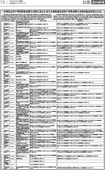 中国信达资产管理股份有限公司浙江省分公司与上海海通证券资产管理有限公司债权收益权转让公告
