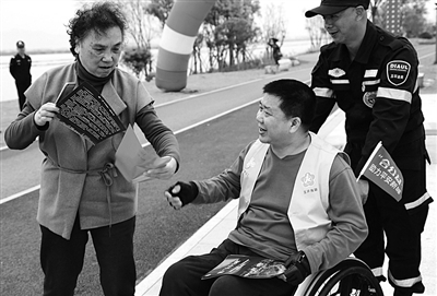 昨天上午,玉环市环湖绿道上,20多名肢残人士在新城派出所民警、党员志愿者的护送下,沿着滨湖绿道骑行,以身残志坚的精神向游人宣传“无盗抢城市”创建工作,呼吁市民携手共创平安和谐。通讯员 黄浚洛 詹智