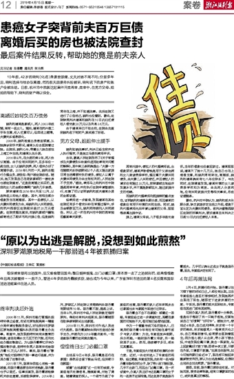 患癌女子突背前夫百万巨债 离婚后买的房也被法院查封