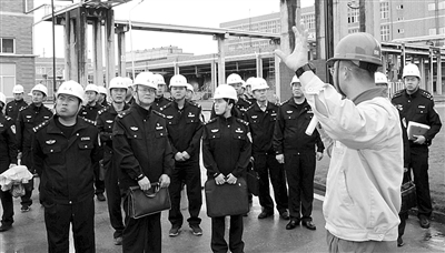 近日,台州市公安机关危险物品管理推进会在临海化工园区举行。图为到场的专管员民警聆听化工园区危化品管理员介绍相关经验。