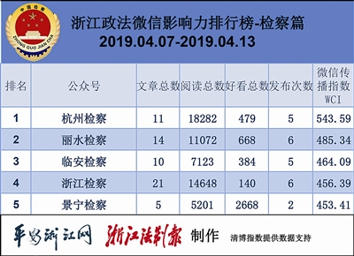 本期检察院榜单上,“临安检察”表现亮眼,跃居榜单第三,热文《【第477期】杭州市临安区人民检察院依法以受贿罪对徐良提起公诉》还获得了最高阅读量。此文以内容取胜,短短几十个字,简明扼要地传达了重要信息。