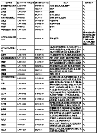 标的债权清单 基准日: 2018年10月21日 单位:人民币元 注:1、清单中保证人、抵押人的担保范围以签署的合同等法律文件约定为准。如公告中债务人、债权金额、担保人等信息与事实不符的,以签署的合同等法律文件约定为准。 2、本公告清单仅列示截至2018年10月21日的贷款本金余额和欠息金额,借款人和担保人应支付给国厚金融资产管理股份有限公司的利息、罚息、违约金及其它应付款按借款合同、担保合同及中国人民银行的有关规定或生效法律文书确定的方法计算。 3、若借款人、担保人因各种原因更名、改制、歇业、吊销营业执照或丧失民事主体资格的,请相关承债主体及/或主管部门代为履行义务或履行清算责任。 特此公告。 联系电话: 18656567896,0571-87837983 国厚金融资产管理股份有限公司 中国华融资产管理股份有限公司浙江省分公司 2019年4月16日 |