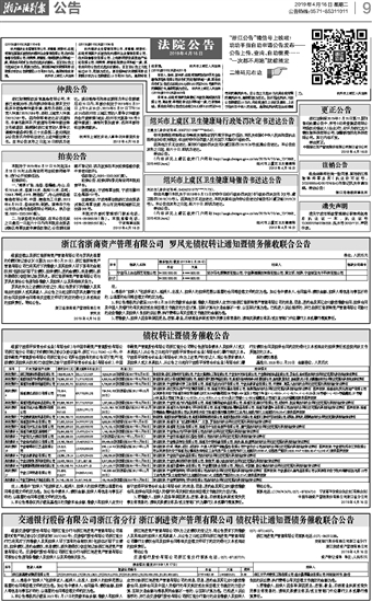 交通银行股份有限公司浙江省分行 浙江润进资产管理有限公司 债权转让通知暨债务催收联合公告