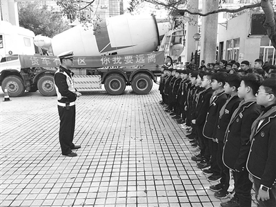 本报讯 大货车开进校园,为孩子们现身说法讲解交通安全,让孩子们近距离体验大货车盲区危险,懂得知风险、避风险……这是近日平阳交警走进校园为孩子们送上的“货车有盲区,你我要远离”交通安全体验课。