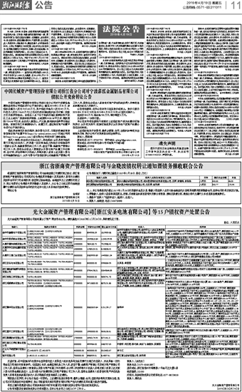 光大金瓯资产管理有限公司【浙江安圣电池有限公司】 等15户债权资产处置公告