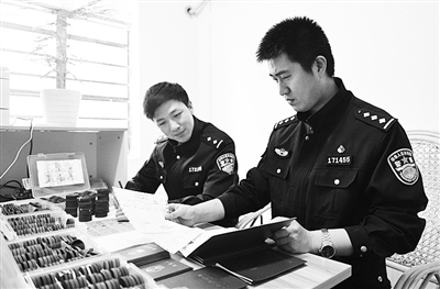 图为民警对收缴的假印章和假证件进行清点登记。通讯员 林利军