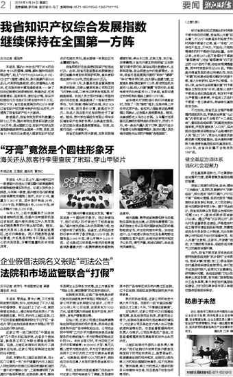 我省知识产权综合发展指数 继续保持在全国第一方阵