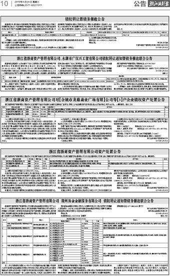 浙江省浙商资产管理有限公司对【余姚市龙鼎商业广场有限】公司等【3】户企业债权资产处置公告