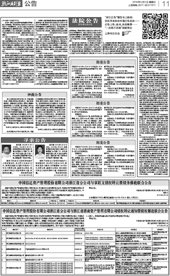 中国信达资产管理股份有限公司浙江省分公司与浙江省浙商资产管理有限公司债权转让通知暨债权催收联合公告