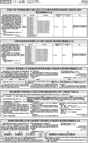 中国东方资产管理股份有限公司浙江省分公司与永康市伟帮投资咨询有限公司债权转让通知 暨债务催收联合公告