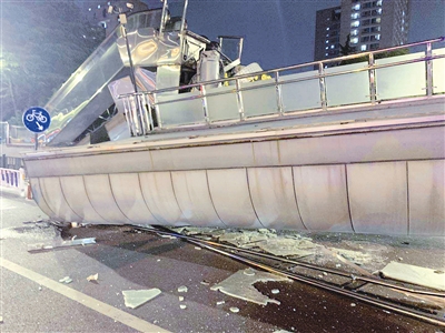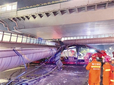 超限大货车撞塌杭州人行天桥