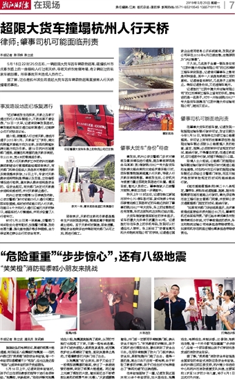 超限大货车撞塌杭州人行天桥