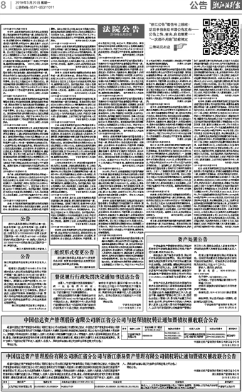 中国信达资产管理股份有限公司浙江省分公司与浙江浙易资产管理有限公司债权转让通知暨债权催收联合公告