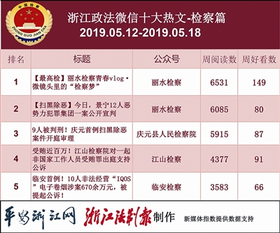 本期检察院榜单,“丽水检察”成为“双料冠军”。五月有青春的芳香、是梦想的季节,“丽水检察”抓住这一时机,推出《【最高检】丽水检察青春vlog?微镜头里的“检察梦”》一文,用微视频的形式,展现了一位年轻检察官的故事,获得了颇多关注。