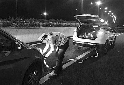 两辆事故车都已经不能动弹,需要拖车施救。奔驰车的拖车先到了,徐纬东就先把车引导下高架,姚晓琦则继续留在现场,等拖车来拖面包车,并闪着警灯维持交通秩序,确保其他车辆安全通行。然而此时,危险却突然袭来。肇事车浙ARV3**从姚晓琦后方快速驶来,姚晓琦避让不及,被撞倒。