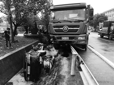 本报讯 近日,郑某驾驶一辆小轿车从平阳县水头镇建安村驶往周山村方向,途经230省道平阳段水头镇周山村路口准备左转弯,此时刘某正驾驶着重型货车沿着230省道直行,也正经过这个路口。悲剧在瞬间发生,大货车车头猛烈地撞上了小轿车。在巨大的冲击力下,小轿车直接被推入道路右侧的水沟中。