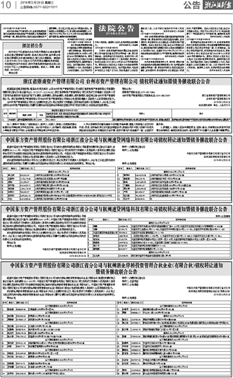 中国东方资产管理股份有限公司浙江省分公司与杭州速贷网络科技有限公司债权转让通知暨债务催收联合公告