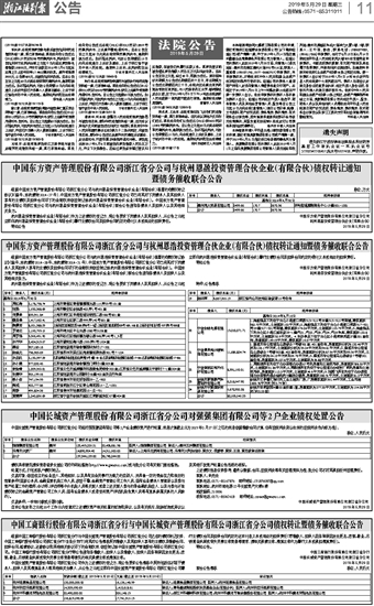 中国工商银行股份有限公司浙江省分行与中国长城资产管理股份有限公司浙江省分公司债权转让暨债务催收联合公告