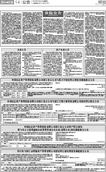 中国信达资产管理股份有限公司浙江省分公司与浦江万银小额贷款有限公司债权转让联合公告